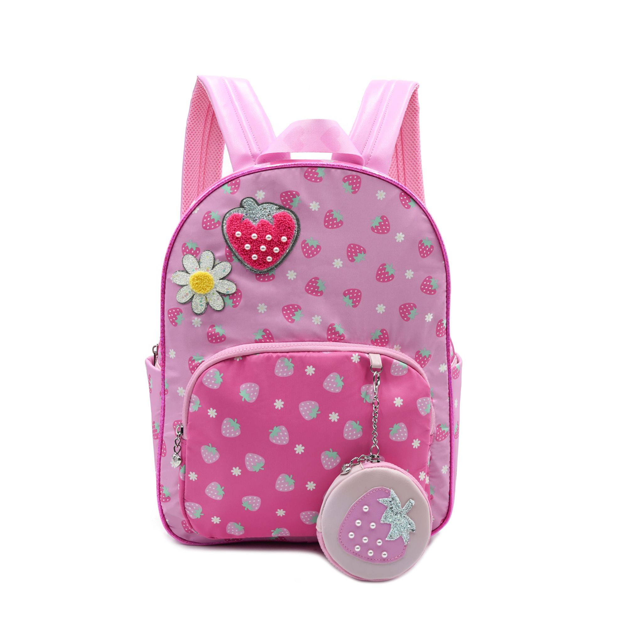 Strawberry Print Backpack with Chain Bag