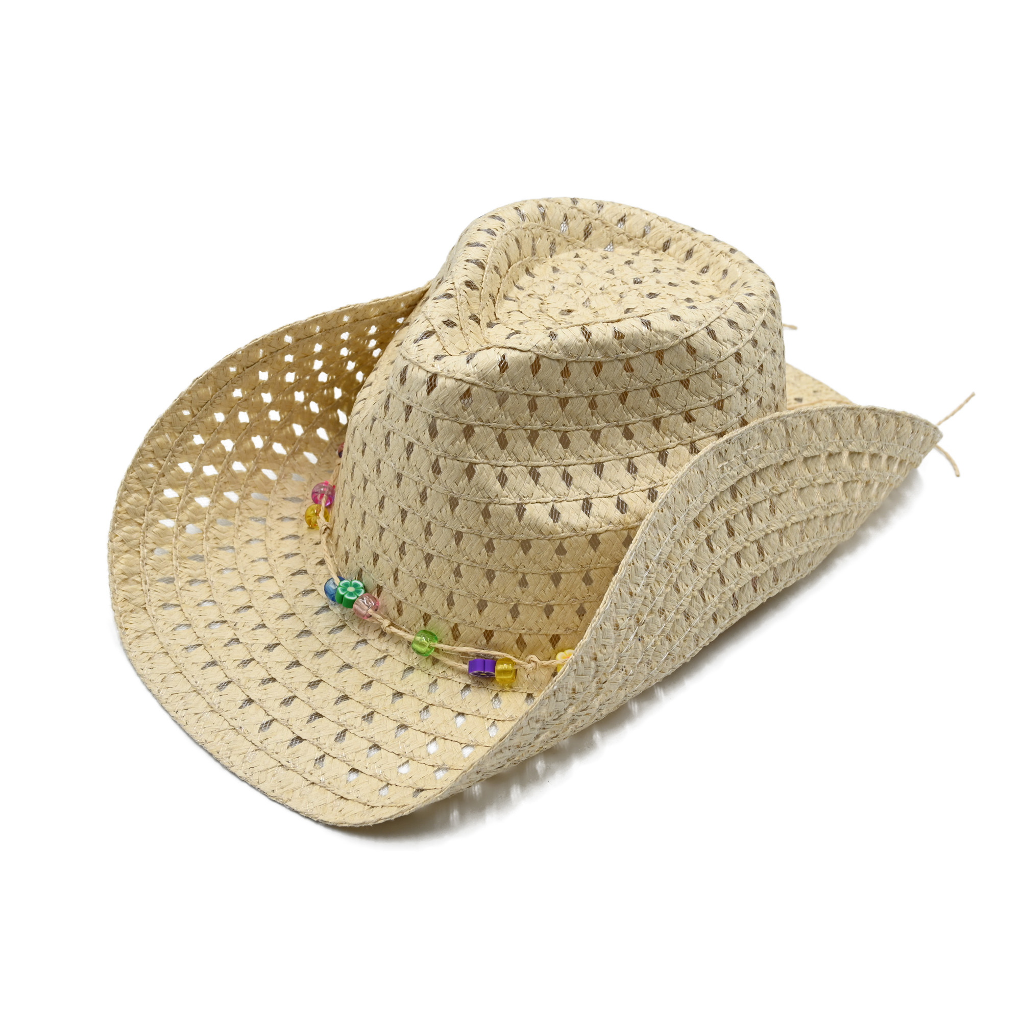 Girls Braided Cowboy Hat with Beaded Trim