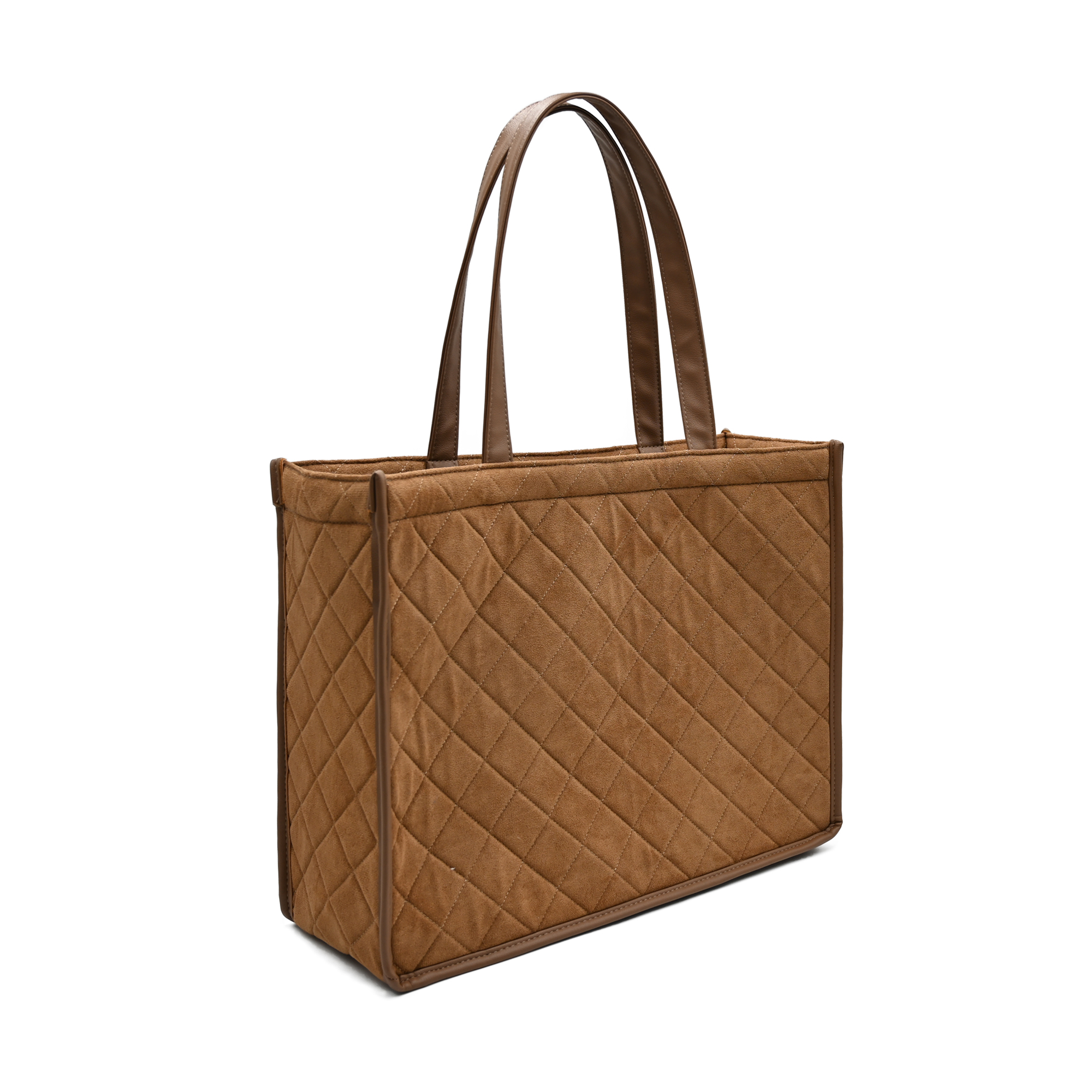 • This attractive shoulder bag is crafted of soft diamond quilted suede.
