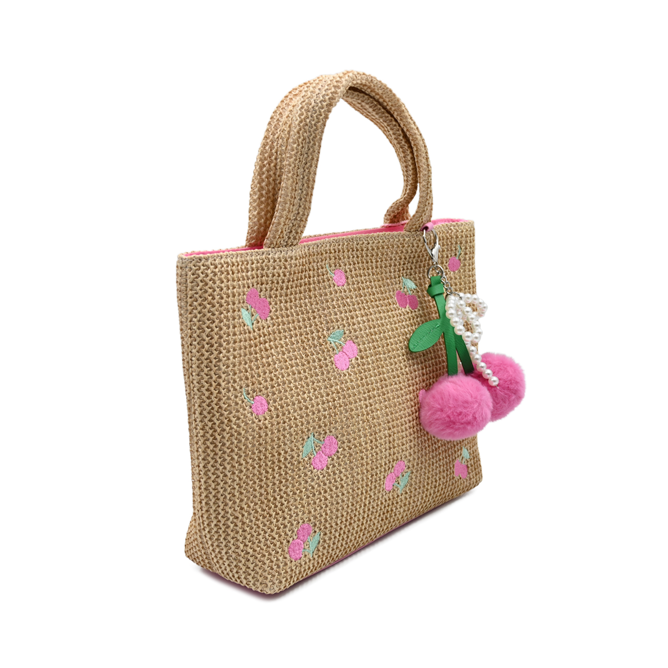 Straw Bag With Cherry Charm Chain