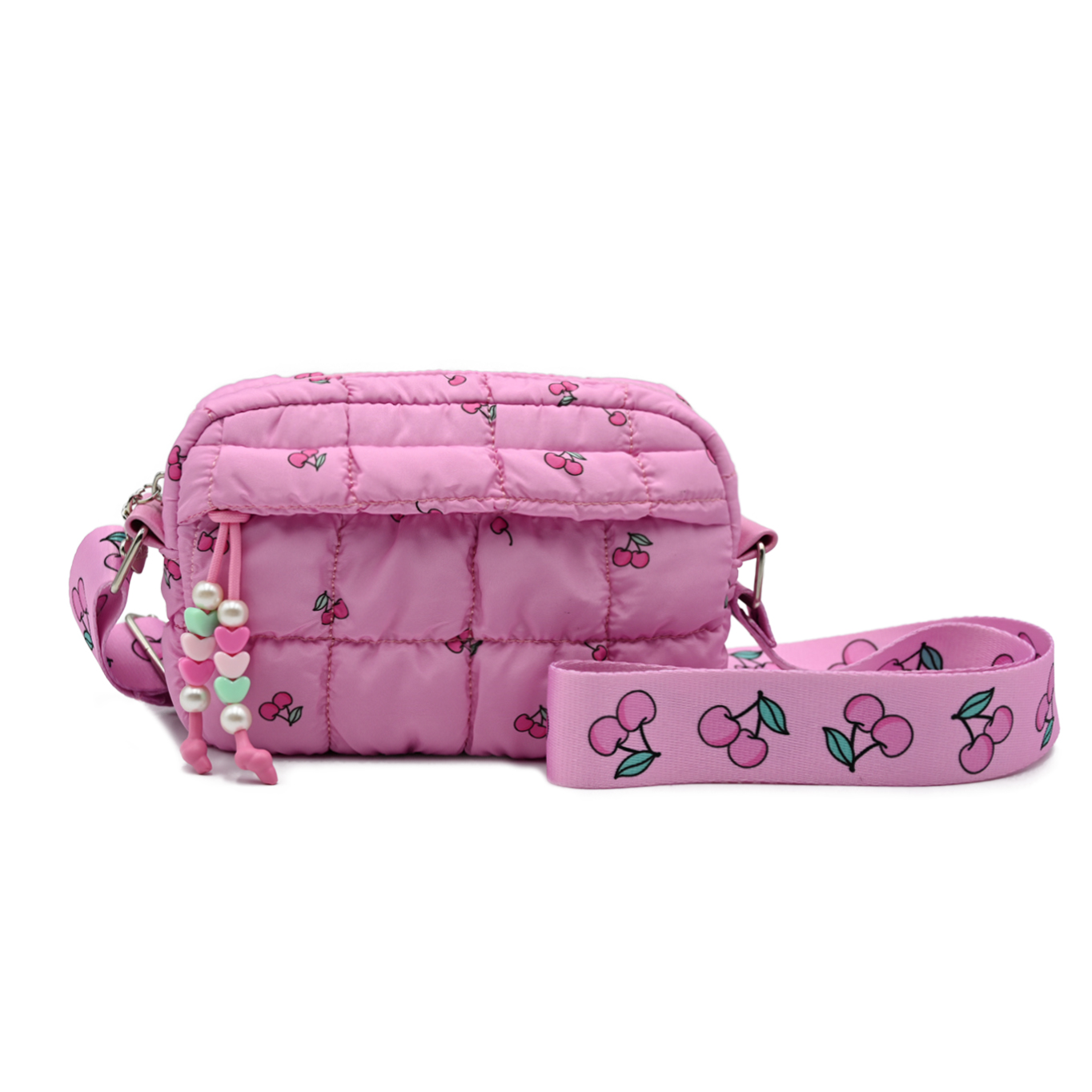 • A girly girl's dream! Our classic scrunch bag just got a flirty new upgrade! With a zipper closure front pocket for extra storage, it's the packing essential every little princess needs!