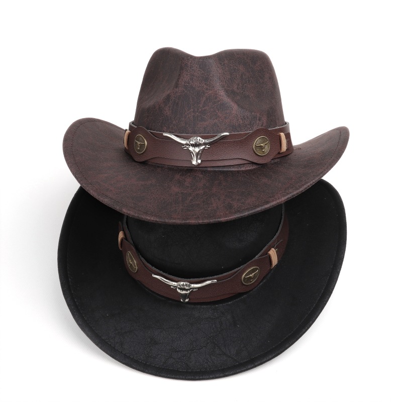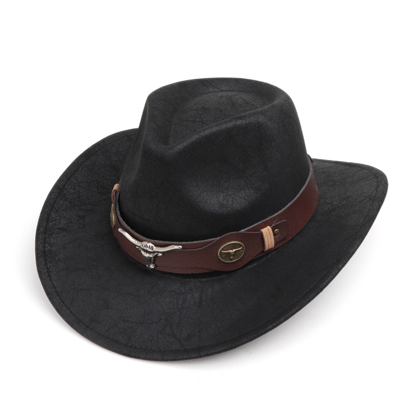 Unisex Vintage Faux Leather Western Cowboy Hat