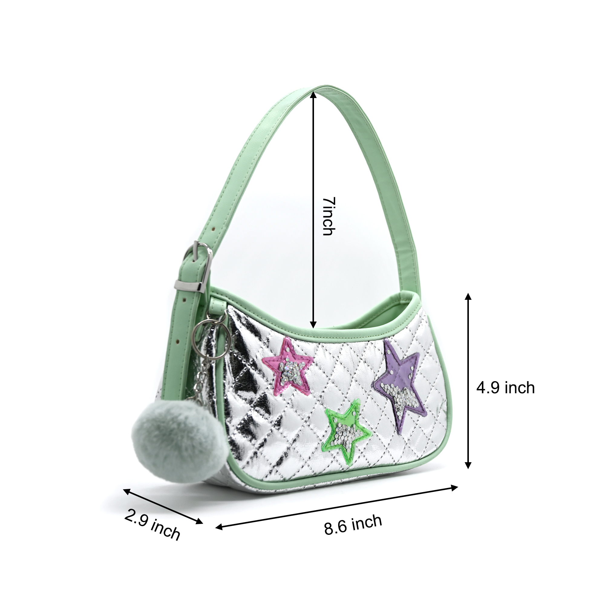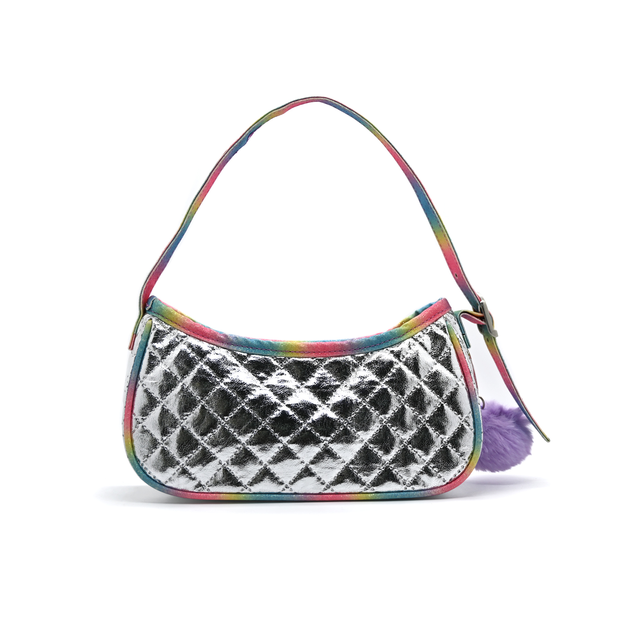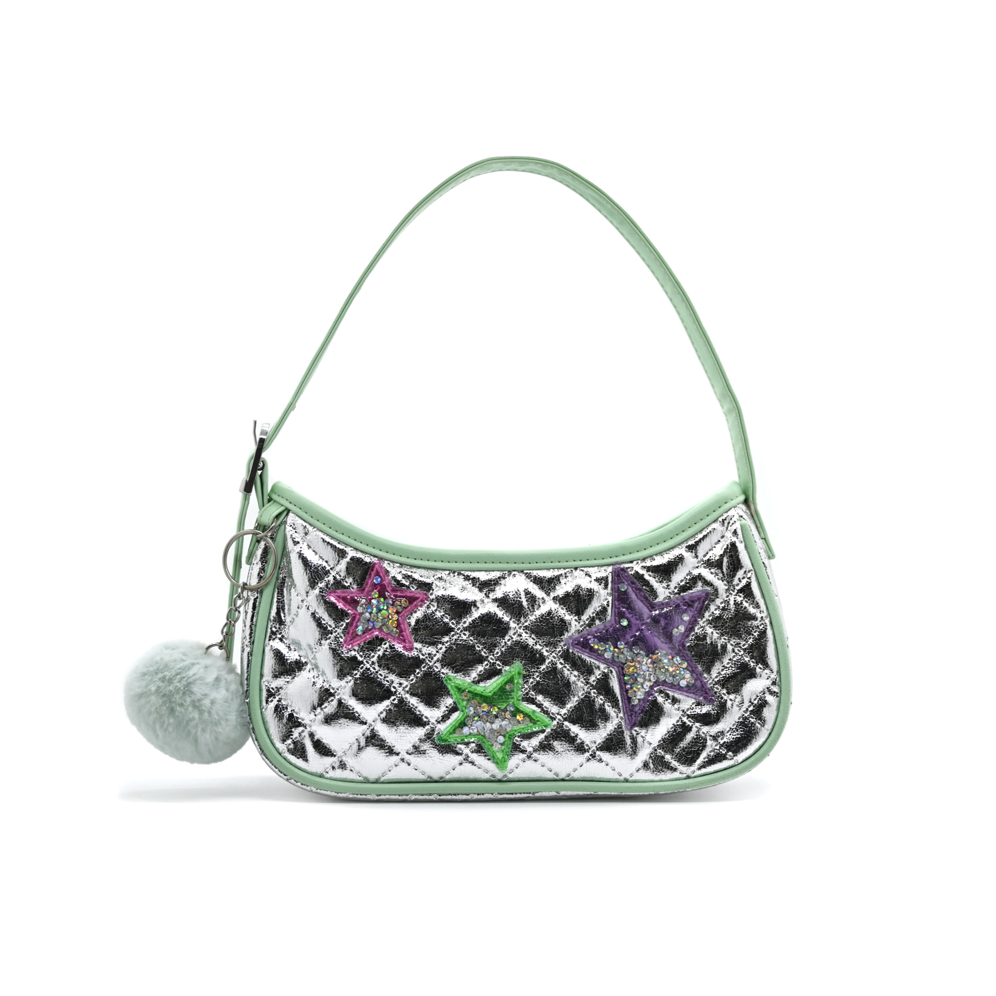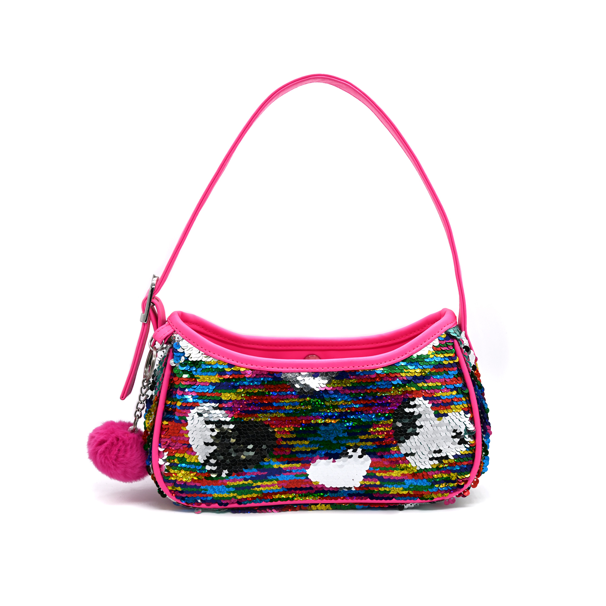 • Shoulder bag with zipper, in rainbow colors, with sequins and star-shaped patches sewn .