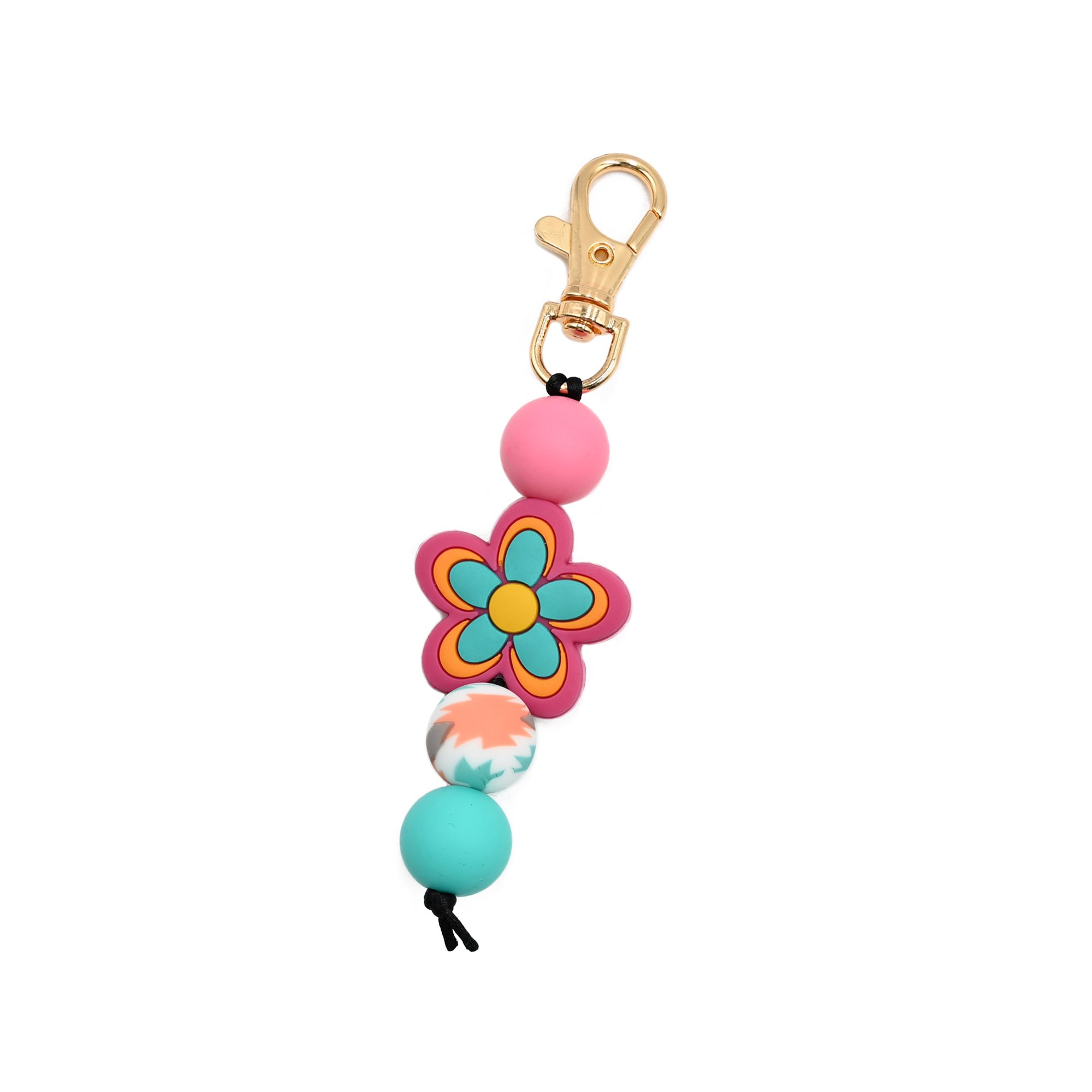 Autumn and Winter Silicone Keychain with Flower and Coffee Beads