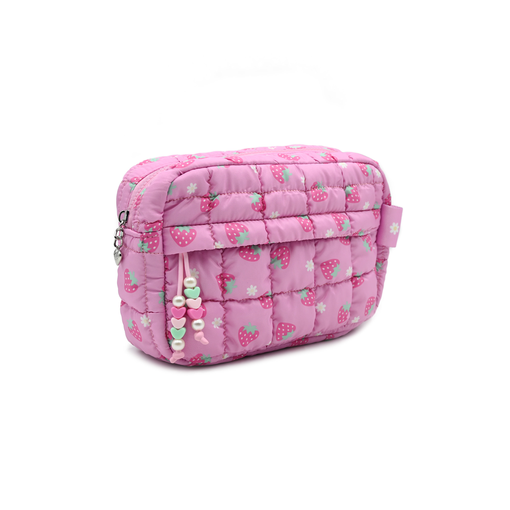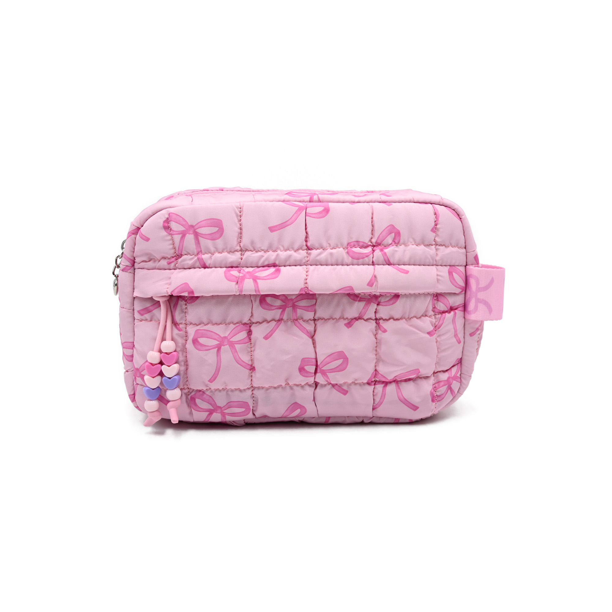 • Our classic scrunch pouch just got a girly new upgrade! With a zipper closure front pocket for extra storage, it's the packing essential every girly girl needs.
